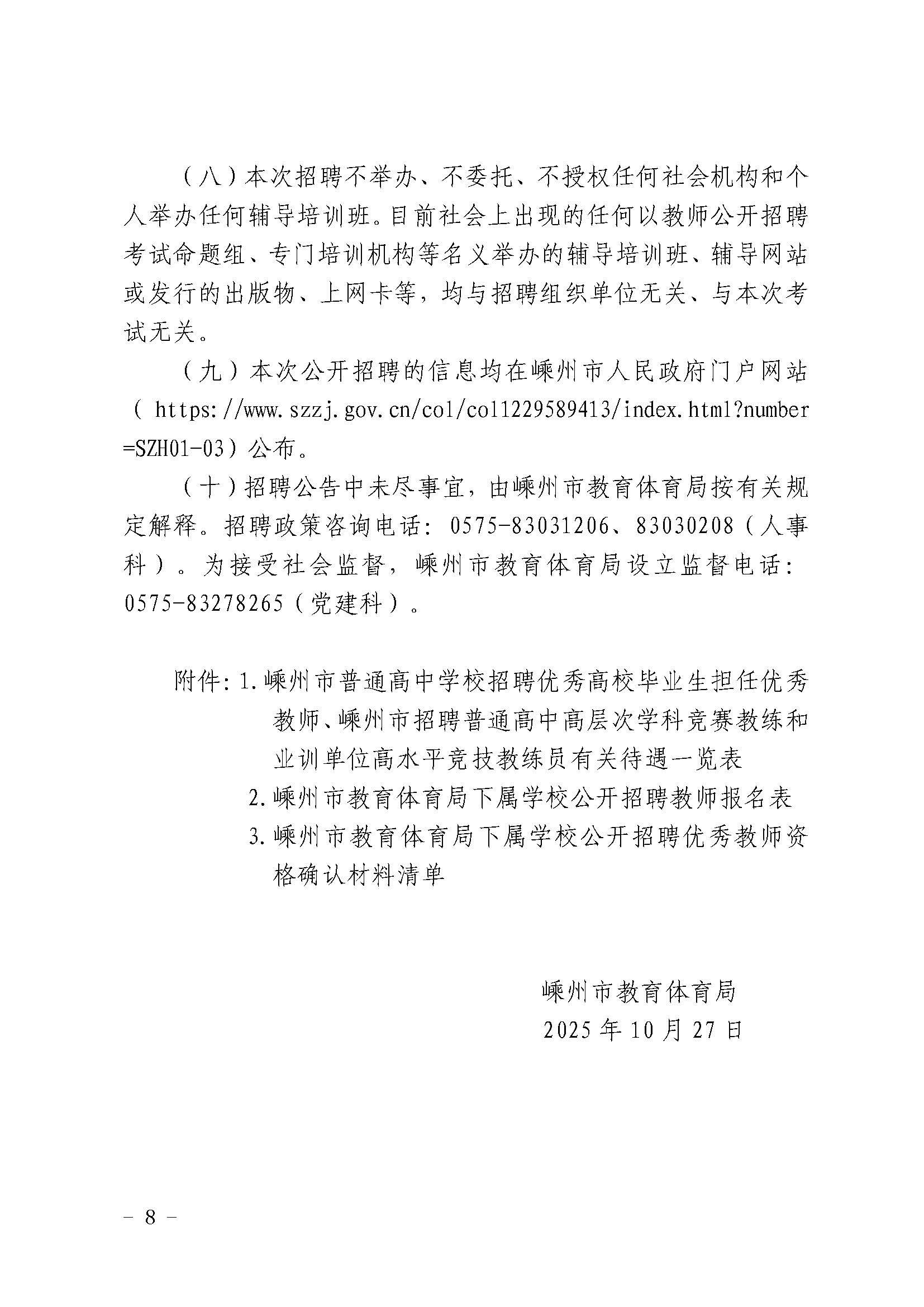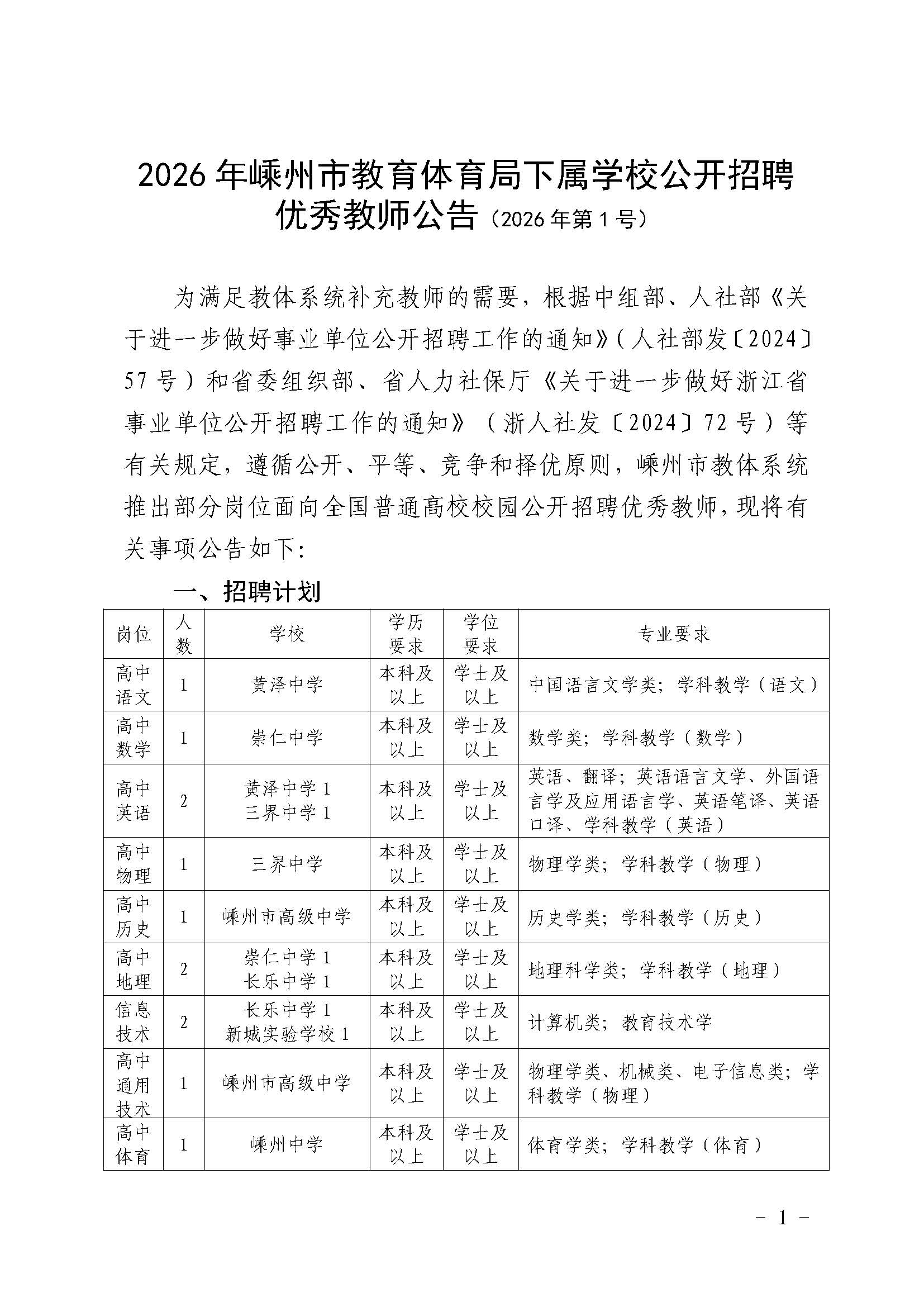 2026年嵊州市教育体育局下属学校公开招聘优秀教师公告(2026年第1号) (附件材料).doc